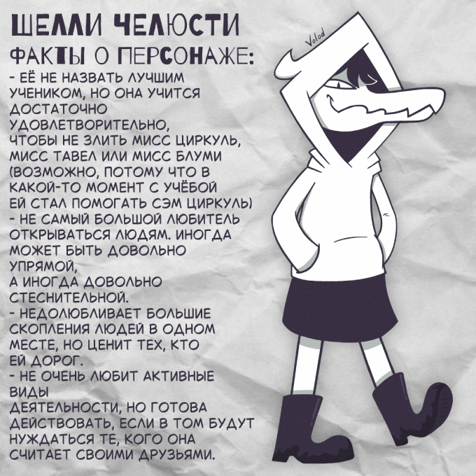- Её не назвать лучшим учеником, но она учится достаточно удовлетворительно, чтобы не злить Мисс Циркуль, Мисс Тавел или Мисс Блуми (возможно, потому что в какой-то момент с учёбой ей стал помогать Сэм Циркуль)